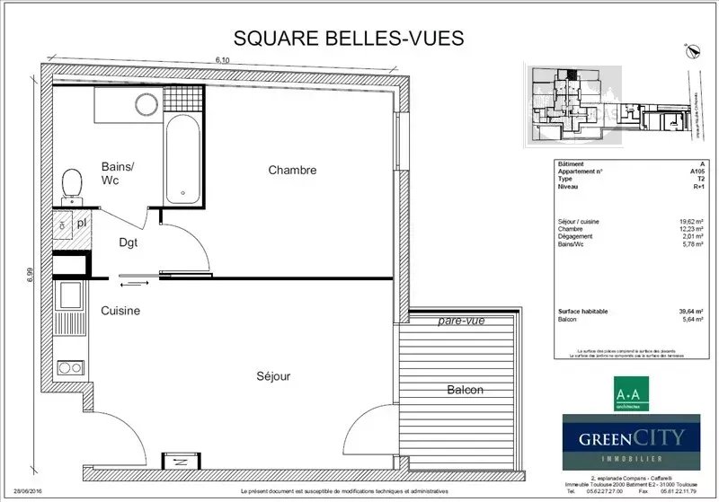 APPARTEMENT TYPE F2, COMPRENANT, UN SEJOUR SUR BALCON AVEC CUISINE OUVERTE SEMI EQUIPEE, UNE CHAMBRE, UNE SALLE DE BAIN AVEC WC ET UNE PLACE DE PARKING